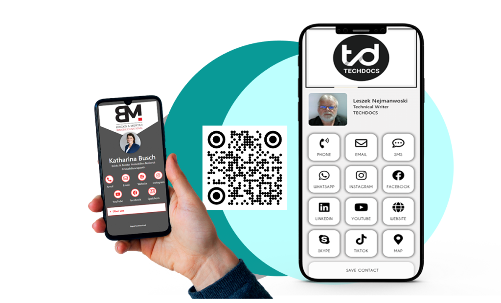 Clickable Digital Business Card, Virtual Card, E-Card, Flyer, with QR code. With a clickable business card, you can make it easy for your contacts to connect with platforms: LinkedIn, Twitter, Instagram, or any other social media site.